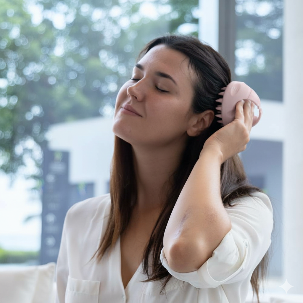• Étape 2 : Effectuez des mouvements circulaires pour masser l’ensemble du cuir chevelu, en insistant sur les zones présentant des tensions ou des impuretés.